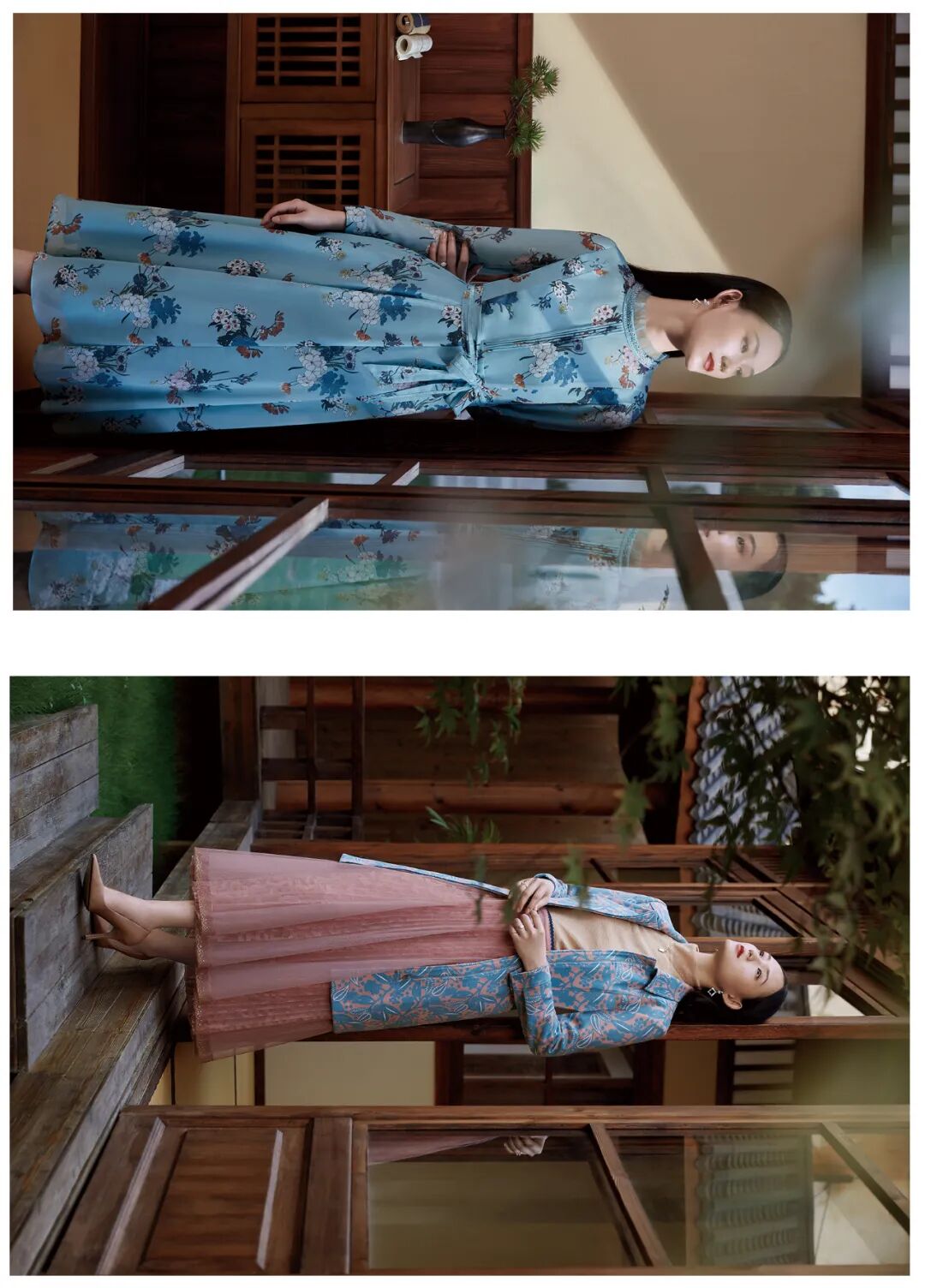 修饰身形的剪裁,独特高级的花纹图案,加上复古刺绣形成独特的产品风格。